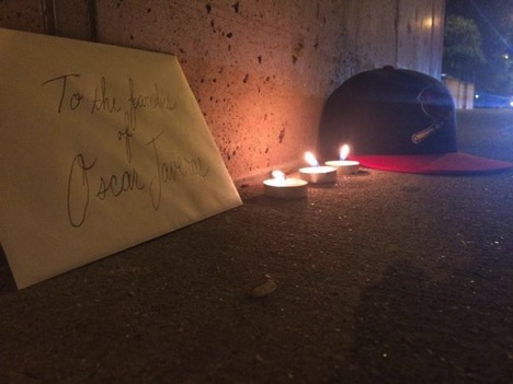 Makeshift Memorial for Oscar Taveras at the Stan Musial Statue on the night of his death. Photo Credit: Ashley Green